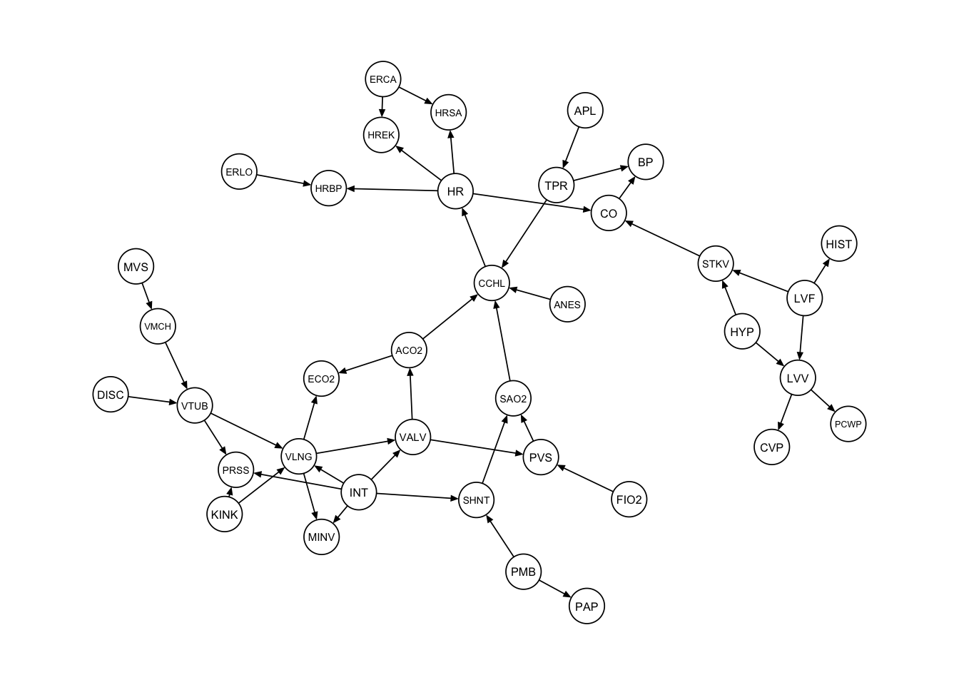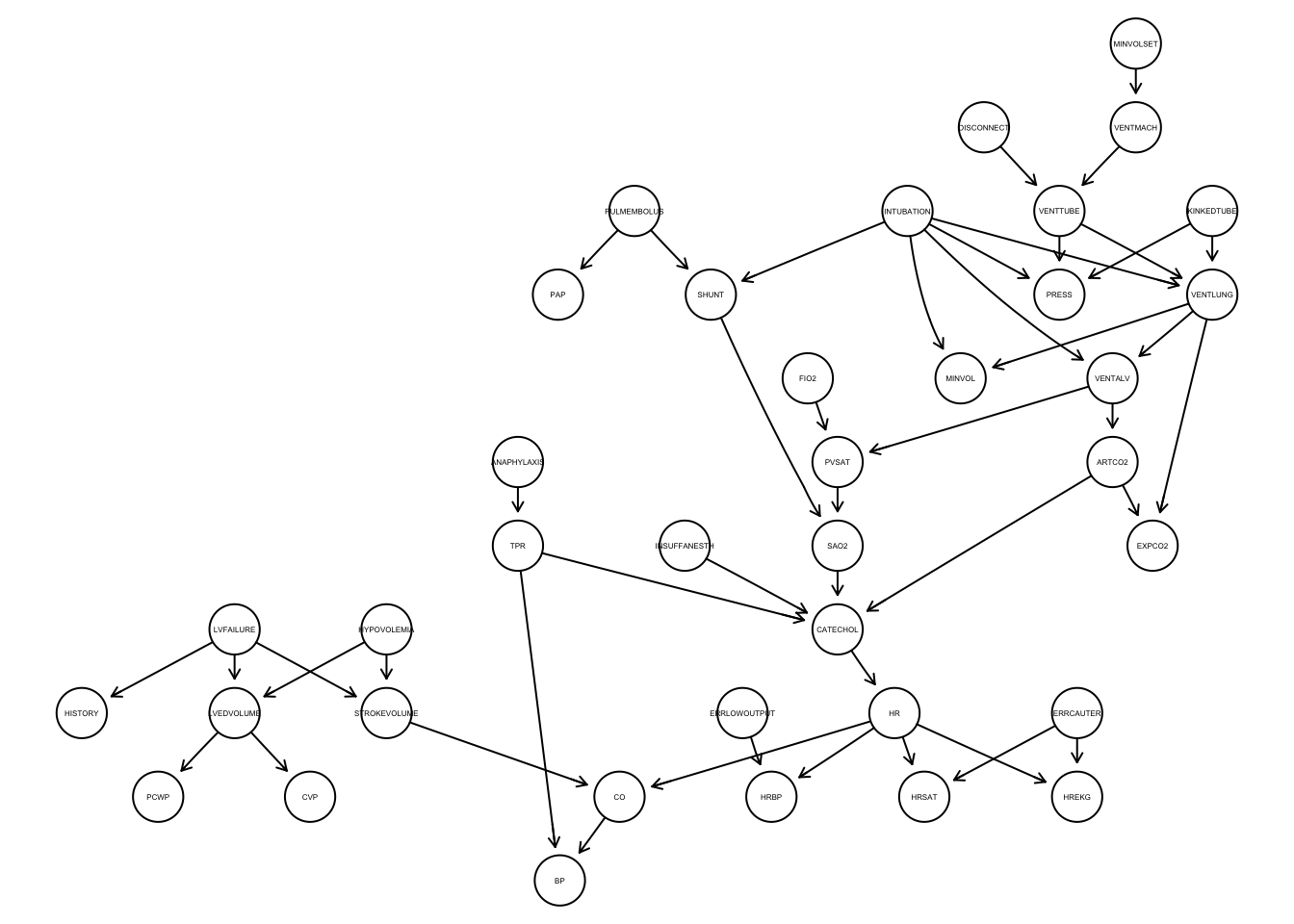 modelstring(dag_alarm) = paste0("[HIST|LVF][CVP|LVV][PCWP|LVV][HYP][LVV|HYP:LVF]", "[LVF][STKV|HYP:LVF][ERLO][HRBP|ERLO:HR][HREK|ERCA:HR][ERCA][HRSA|ERCA:HR]",